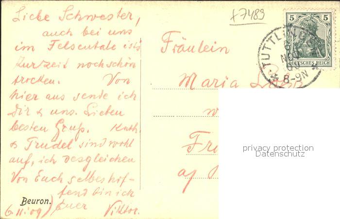 41796577 alte Postkarte Beuron Donautal postalisch gelaufen Erhaltung siehe scans KatCode: 11110008437005