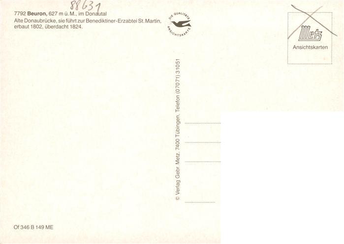 73878839 Beuron Donautal Alte Donaubruecke postalisch nicht gelaufen Erhaltung siehe scans [WerneD78] KatCode: 11110008437005