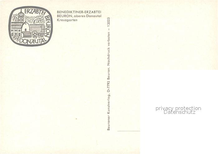73575384 Beuron Donautal Benediktiner Erzabtei Kreuzgarten Kloster postalisch nicht gelaufen Erhaltung siehe scans [FriedD77] KatCode: 11110008437005