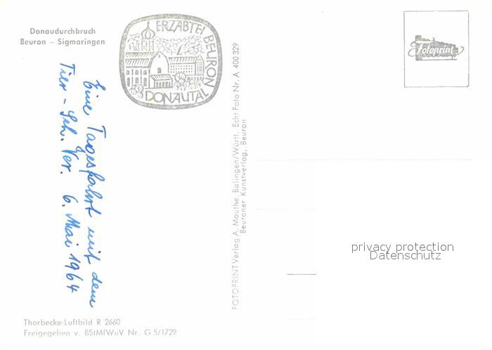 72694089 Beuron Donautal Donaudurchbruch Fliegeraufnahme postalisch nicht gelaufen Erhaltung siehe scans [FriedD77] KatCode: 11110008437005