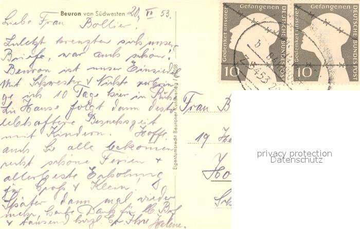 73298052 alte Postkarte Beuron Donautal Durchblick zum Kloster Schwaebische Alb postalisch gelaufen Erhaltung siehe scans [FriedD77] KatCode: 11110008437005