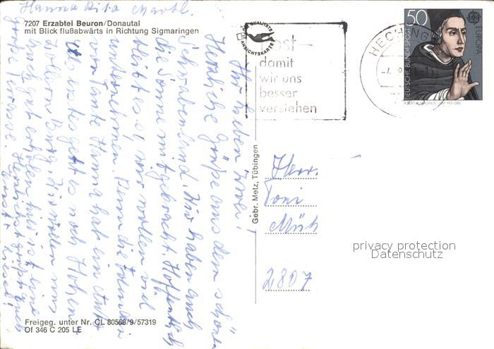 72391088 alte Postkarte Beuron Donautal Erzabtei postalisch gelaufen Erhaltung siehe scans KatCode: 11110008437005