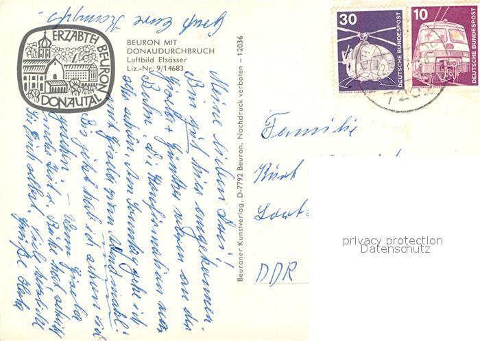 73165022 alte Postkarte Beuron Donautal Erzabtei Beuron Fliegeraufnahme postalisch gelaufen Erhaltung siehe scans [WerneD78] KatCode: 11110008437005