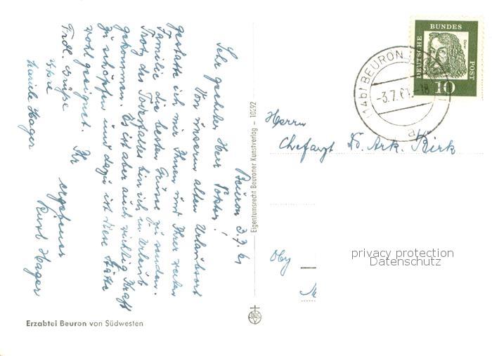 73774714 alte Postkarte Beuron Donautal Erzabtei Beuron Fliegeraufnahme postalisch gelaufen Erhaltung siehe scans [WerneD78] KatCode: 11110008437005