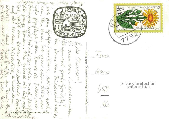 74104654 alte Postkarte Beuron Donautal Erzabtei Fliegeraufnahme postalisch gelaufen Erhaltung siehe scans [WerneD78] KatCode: 11110008437005