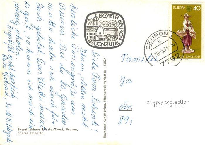 73081094 alte Postkarte Beuron Donautal Exerzitienhaus Maria Trost postalisch gelaufen Erhaltung siehe scans [FriedD77] KatCode: 11110008437005