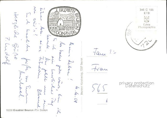 72299124 alte Postkarte Beuron Donautal Fliegeraufnahme Erzabtei postalisch gelaufen Erhaltung siehe scans KatCode: 11110008437005