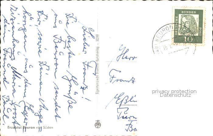 72405279 alte Postkarte Beuron Donautal Fliegeraufnahme Erzabtei postalisch gelaufen Erhaltung siehe scans KatCode: 11110008437005