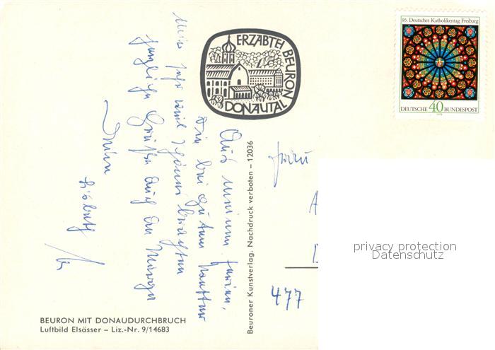 73257924 Beuron Donautal Fliegeraufnahme Erzabtei Schloss Werenwag postalisch nicht gelaufen Erhaltung siehe scans [NatalD47] KatCode: 11110008437005