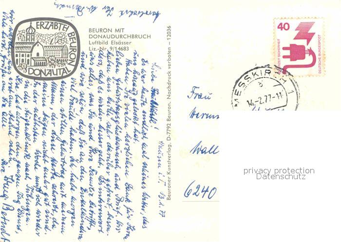 72793116 alte Postkarte Beuron Donautal Fliegeraufnahme mit Donaudurchbruch postalisch gelaufen Erhaltung siehe scans [LiesaD40] KatCode: 11110008437005