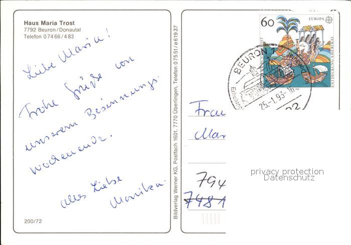 72479063 alte Postkarte Beuron Donautal Haus Maria Trost postalisch gelaufen Erhaltung siehe scans KatCode: 11110008437005