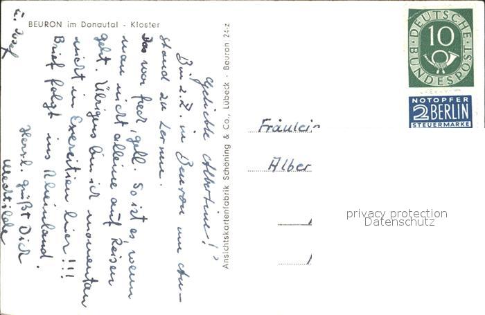 72342263 Beuron Donautal Kloster postalisch nicht gelaufen Erhaltung siehe scans KatCode: 11110008437005