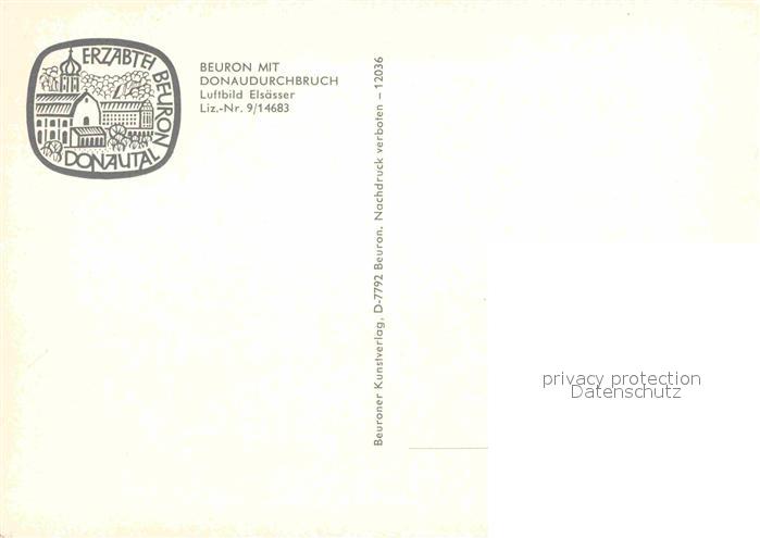 72795682 Beuron Donautal mit Donaudurchbruch Schwaebische Alb Fliegeraufnahme postalisch nicht gelaufen Erhaltung siehe scans [FriedD77] KatCode: 11110008437005
