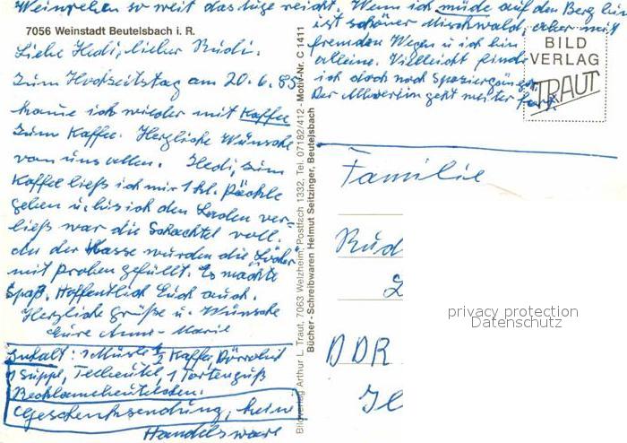 72628522 Beutelsbach Weinstadt Panorama postalisch nicht gelaufen Erhaltung siehe scans [WerneD78] KatCode: 11110008119091