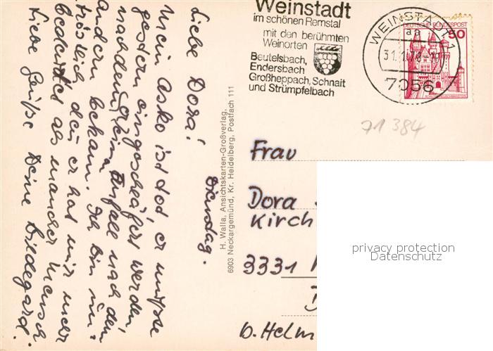 73852949 alte Postkarte Beutelsbach Weinstadt Rathaus Kirchpartie Neues Viertel Strassenpartie postalisch gelaufen Erhaltung siehe scans [WerneD78] KatCode: 11110008119091