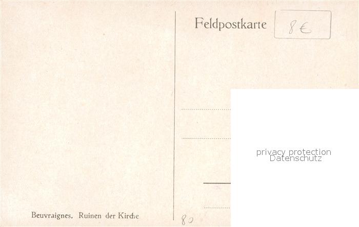 13485189 Beuvraignes Ruinen der Kirche Künstlerkarte Feldpost KatCode 11170080380101