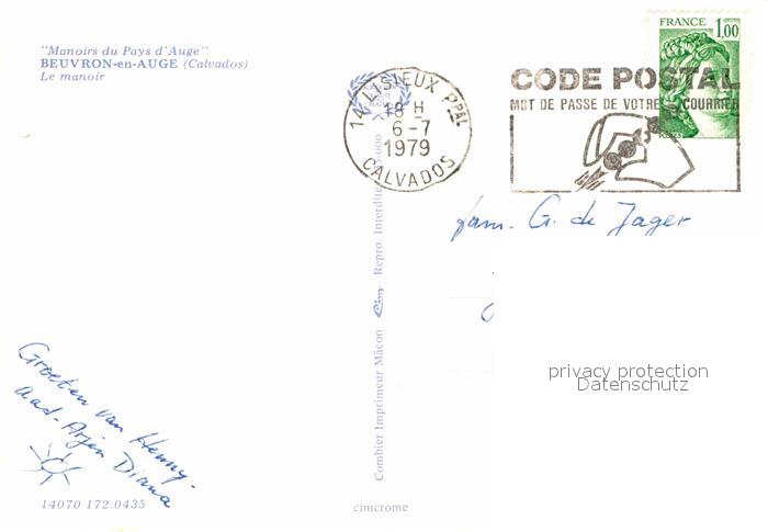 12663183 carte postale Beuvron-en-Auge Le manoir postalisch gelaufen Erhaltung siehe scans [NatalD47] KatCode: 11170014314070