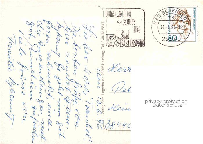 72848932 alte Postkarte Bevensen Bad Denkmal Fontaene Kurhaus Park Geschichte postalisch gelaufen Erhaltung siehe scans [FriedD77] KatCode: 11110003360002