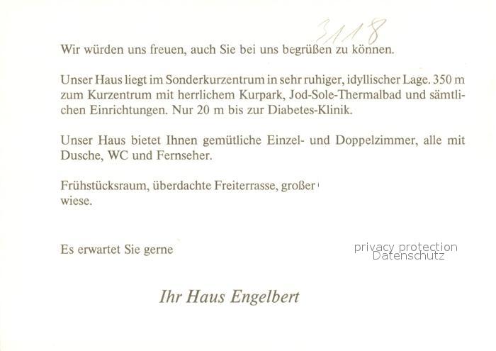 73086182 Bevensen Bad Haus Engelbert postalisch nicht gelaufen Werbekarte (keine Postkarte) Erhaltung siehe scans [KathaD81] KatCode: 11110003360002