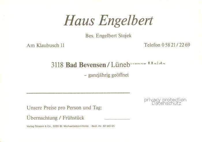 73086189 Bevensen Bad Huas Engelbert postalisch nicht gelaufen Werbekarte (keine Postkarte) Erhaltung siehe scans [KathaD81] KatCode: 11110003360002