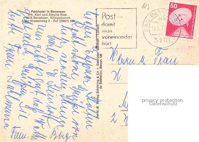 74042667 alte Postkarte Bevensen Bad Uelzen Niedersachsen Parkhotel Restaurant Gartenterrasse postalisch gelaufen Erhaltung siehe scans [FriedD77] KatCode: 11110003360002