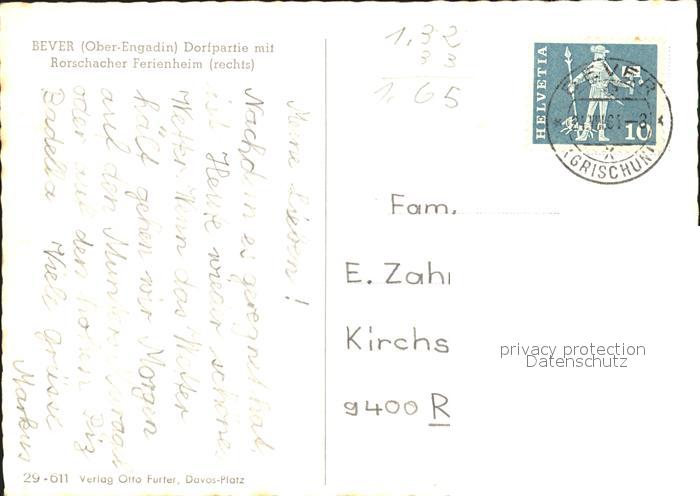 11632577 alte Postkarte Bever Maloja Dorfpartie mit Rorschacher Ferienheim postalisch gelaufen Erhaltung siehe scans KatCode: 11470100335208