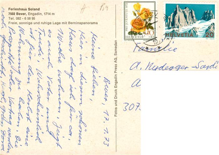 13887155 alte Postkarte Bever Maloja GR Ferienhaus Soland Gastraum Panorama postalisch gelaufen Erhaltung siehe scans [WerneD78] KatCode: 11470100335208