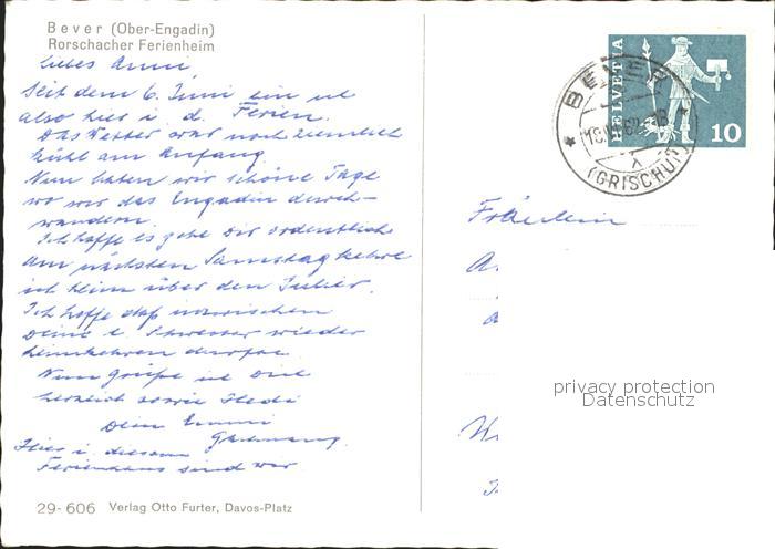 11632578 alte Postkarte Bever Maloja Rorschacher Ferienheim postalisch gelaufen KatCode: 11470100335208