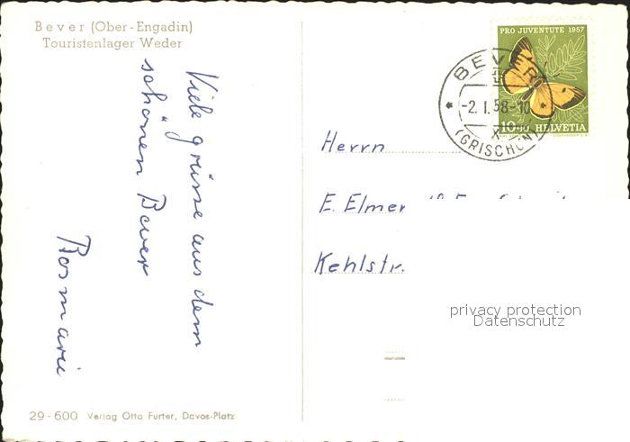 11632738 alte Postkarte Bever Maloja Touristenlager Weder postalisch gelaufen Erhaltung siehe scans KatCode: 11470100335208