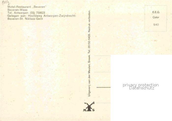 12880881 Beveren-Waes Motel Restaurant Beveren postalisch nicht gelaufen Erhaltung siehe scans [KathaD81] KatCode: 11070046000045