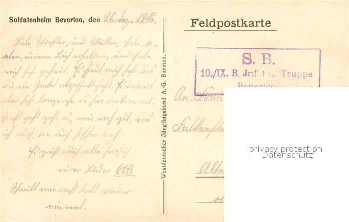 73335749 carte postale Beverloo Haus des belgischen Kriegsminister postalisch gelaufen Feldpost Erhaltung siehe scans [LiesaD40] KatCode: 11070071003265