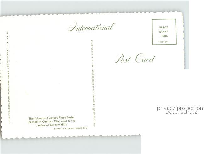 72391034 Beverly Hills California Century Paza Hotel by Night postalisch nicht gelaufen Erhaltung siehe scans KatCode: 14140050000000
