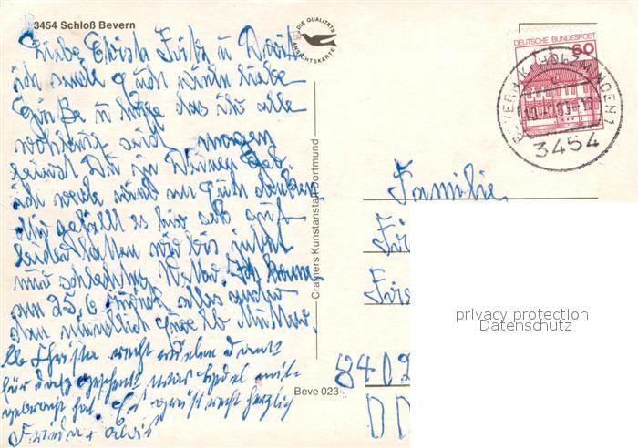73746020 alte Postkarte Bevern Holzminden Schloss Bevern postalisch gelaufen Erhaltung siehe scans [WerneD78] KatCode: 11110003255002