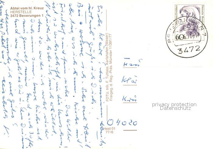 73117093 alte Postkarte Beverungen Abtei Herstelle postalisch gelaufen Erhaltung siehe scans [KathaD81] KatCode: 11110005762008
