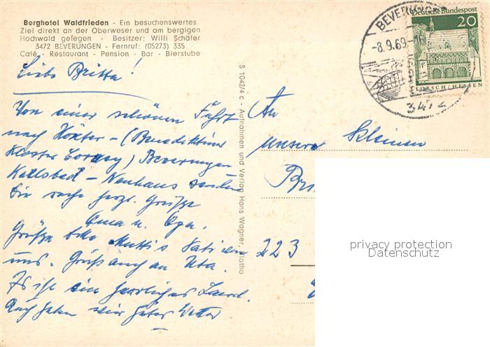 73087771 alte Postkarte Beverungen Berghotel Waldfrieden postalisch gelaufen Erhaltung siehe scans [KathaD81] KatCode: 11110005762008