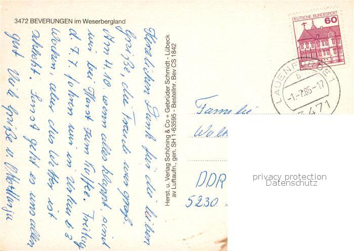 73015157 alte Postkarte Beverungen Fliegeraufnahme postalisch gelaufen Erhaltung siehe scans [NatalD47] KatCode: 11110005762008