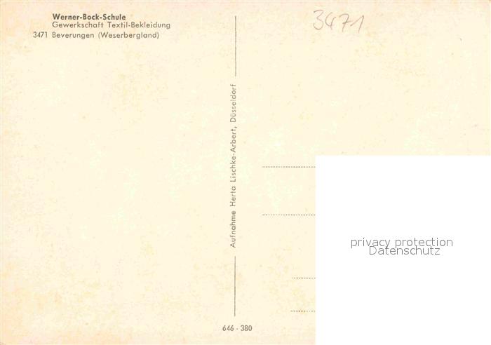 72930582 Beverungen Werner Bock Schule Gewerkschaft Textil Bekleidung postalisch nicht gelaufen Erhaltung siehe scans [FriedD77] KatCode: 11110005762008