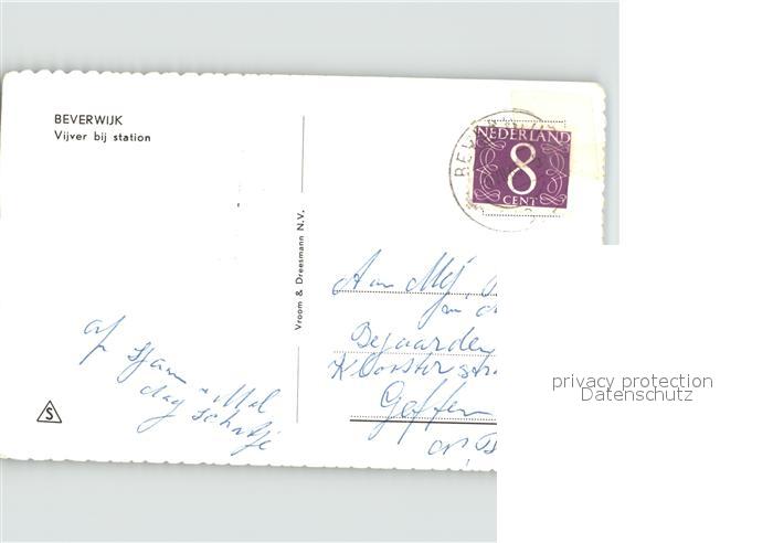 old postcard Beverwijk Vijver bij station postalisch gelaufen Erhaltung siehe scans