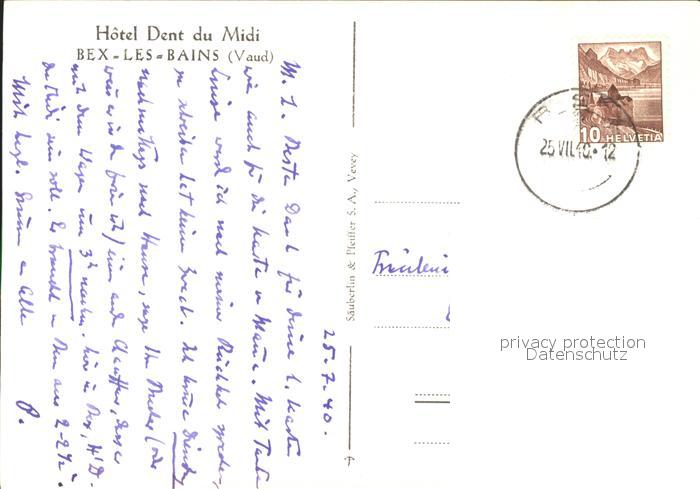 11644832 alte Postkarte Bex les Bains Hotel Dent du Midi postalisch gelaufen Erhaltung siehe scans KatCode: 11470240755778