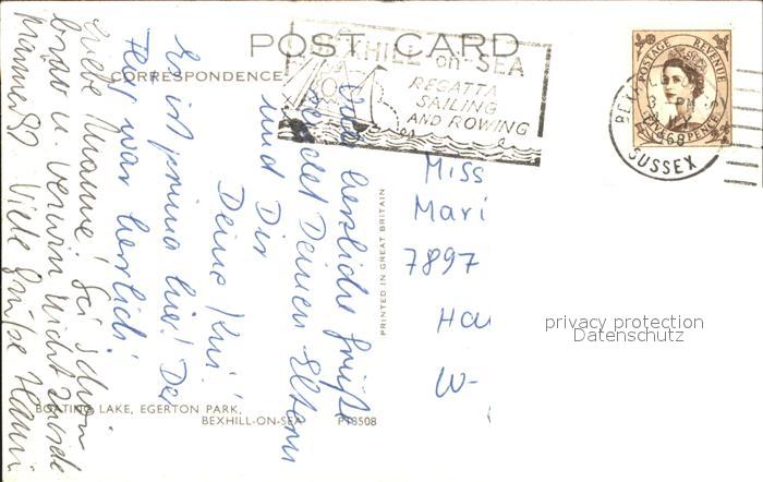 11777853 old postcard Bexhill Boating Lake Egerton Park postalisch gelaufen Erhaltung siehe scans KatCode: 11570UKJ2J22UD