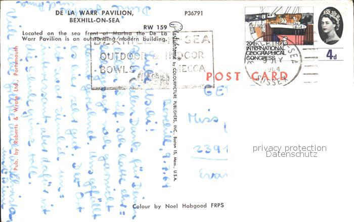 old postcard Bexhill De La Warr Pavilion postalisch gelaufen