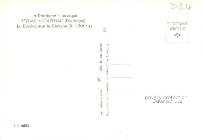 13814376 Beynac-et-Cazenac 24 La Dordogne et le Chateau postalisch nicht gelaufen Erhaltung siehe scans [WerneD78] Wern Katcode 11170024424040