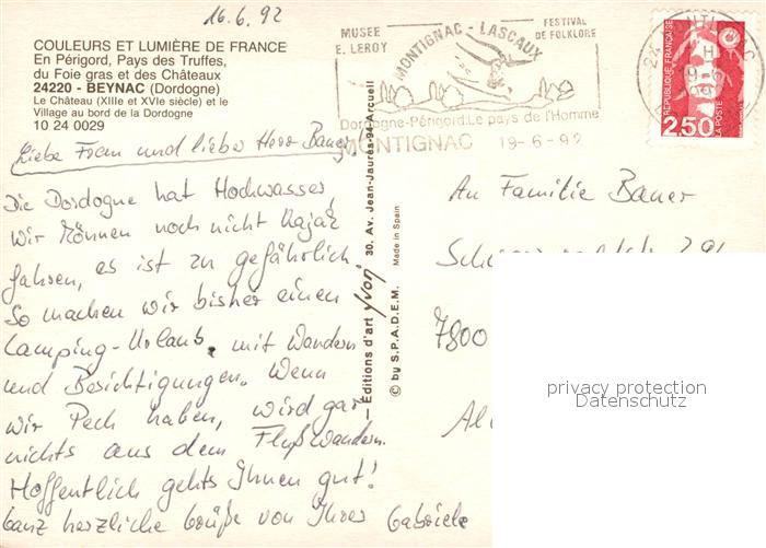 13591423 Beynac-et-Cazenac Le Chateau Village au bord postalisch gelaufen Erhaltung siehe scans [WerneD78] carte postale Wern Katcode 11170024424040