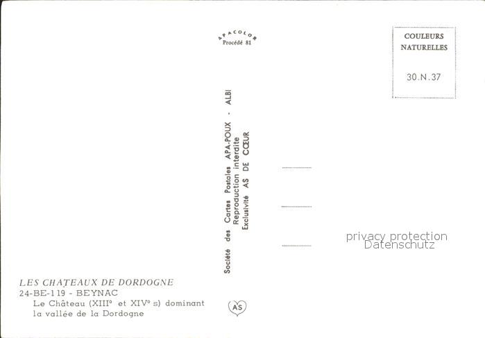 12270379 Beynac-et-Cazenac mit Schloss postalisch nicht gelaufen Erhaltung siehe scans KatCode: 11170024424040