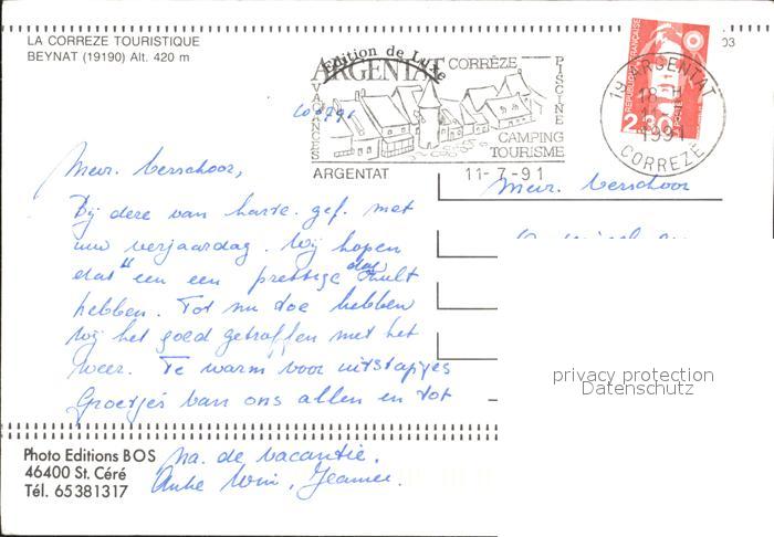 12018867 carte postale Beynat Strassenansicht Brunnen Stadtplatz postalisch gelaufen Erhaltung siehe scans KatCode: 11170019119023