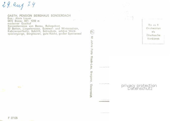 72701295 Bezau Vorarlberg Berghaus Sonderdach Bergbahn postalisch nicht gelaufen Erhaltung siehe scans [KathaD79] KatCode: 11390341080204