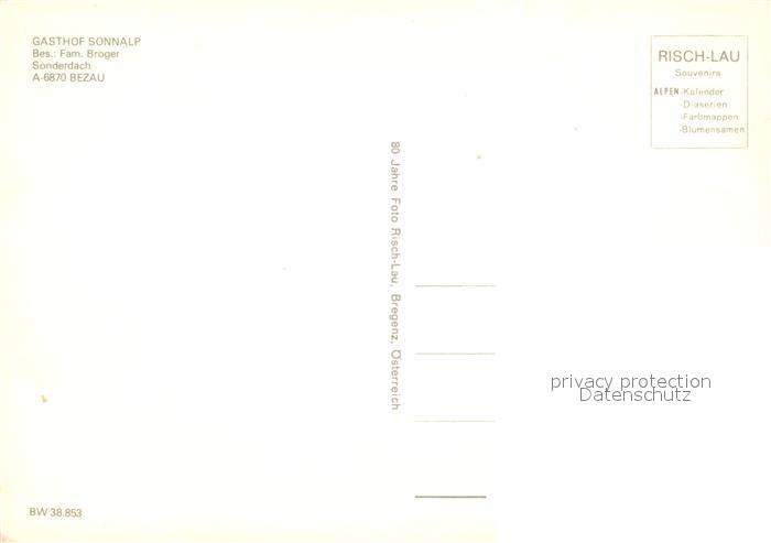 73082826 Bezau Vorarlberg Gasthaus Sonnalp postalisch nicht gelaufen Erhaltung siehe scans [LiesaD40] KatCode: 11390341080204