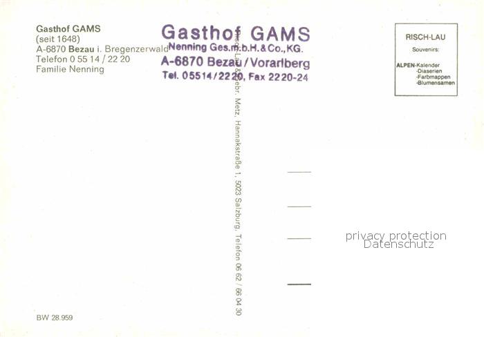 12880813 Bezau Vorarlberg Gasthof Gams postalisch nicht gelaufen Erhaltung siehe scans [KathaD81] KatCode: 11390341080204