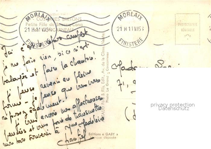 13580813 carte postale Bezec Conq Costume d une petite fille Trachten postalisch gelaufen Erhaltung siehe scans [FriedD77] KatCode: 11170029429039
