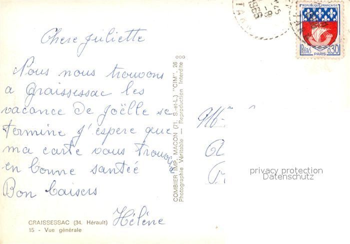 13514686 carte postale Beziers Craissessac postalisch gelaufen Erhaltung siehe scans [KathaD81] KatCode: 11170034134032